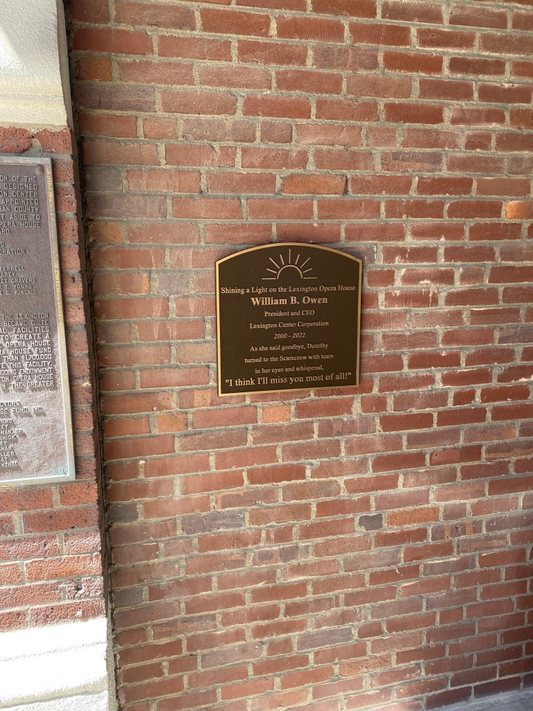 Owen’s commemorative plaque at entrance to the Lexington Opera House. “I think I’ll miss you most of all.”